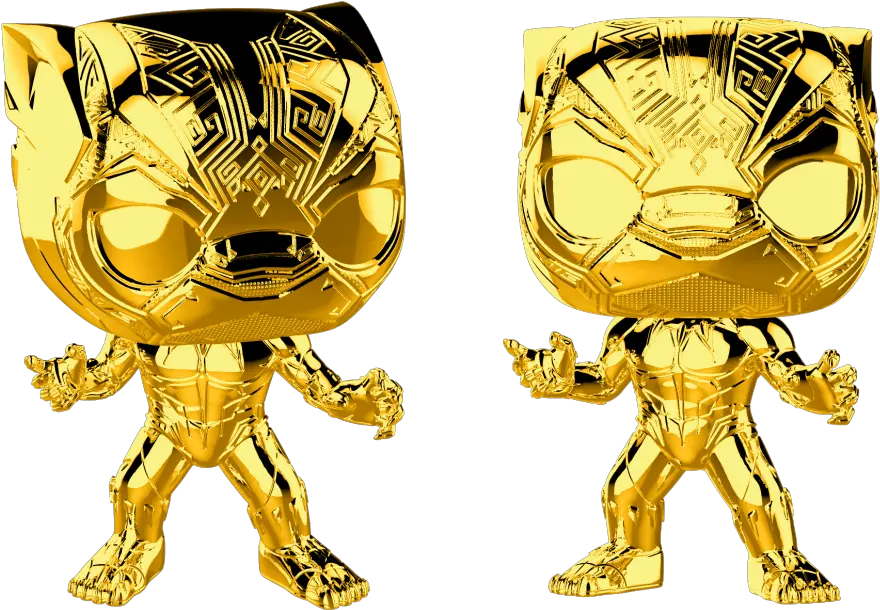 Funko Pop Marvel Studios 10 Black Panther Chrome Gold Gold Chrome Black Panther Pop Png Black Panther Logo Marvel PNG transparent background