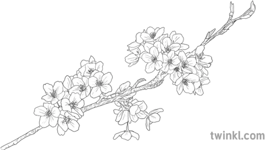 Cherry Blossom Branch Object Plant Flower Hanami Sakura Cherry Blossom Transparent Black And White Png Cherry Blossom Flower Png