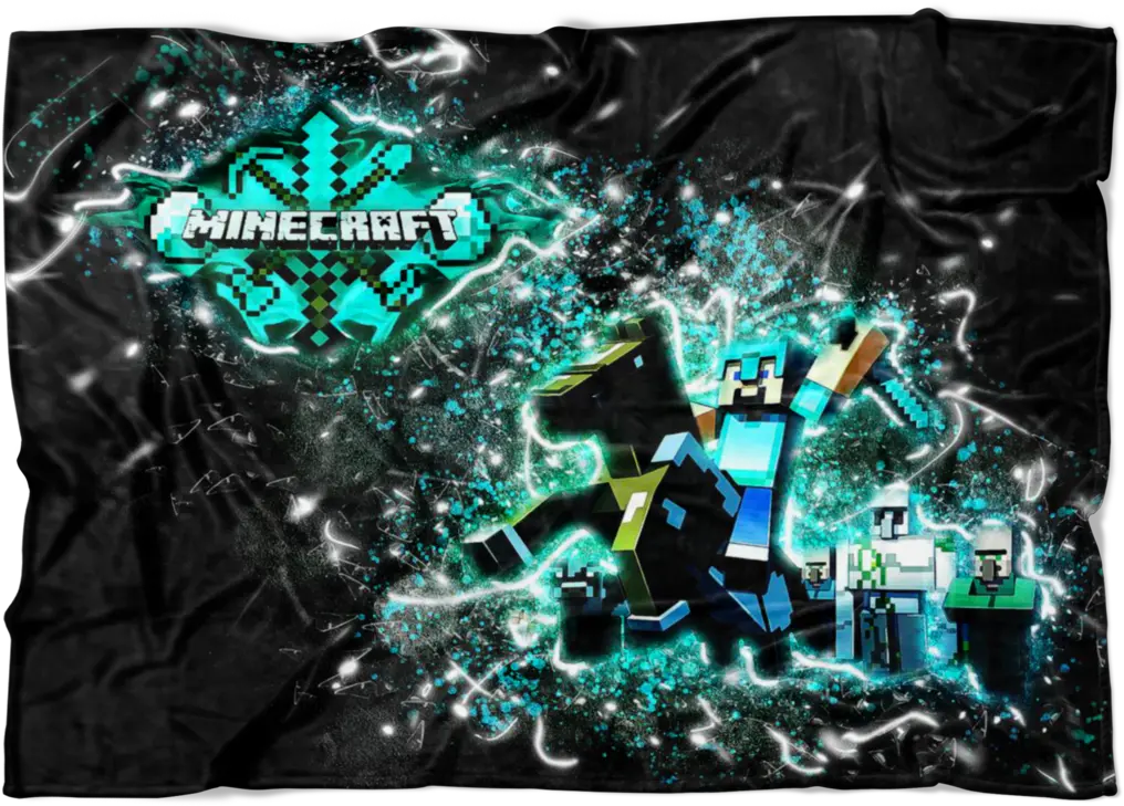 Minecraft Fleece Blanket Steve Diamond Sword Frozen Glory Black Graphic Design Png Minecraft Diamond Transparent