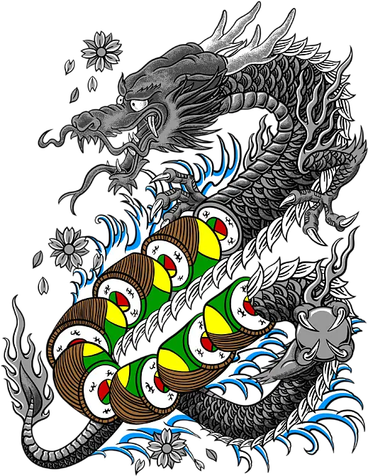 Dragon Roll Japanese Style Tattoo Dragon W Dragon Roll Sushi Greeting Card Dragon Tattoo Japanese Style Png Dragon Tattoo Transparent
