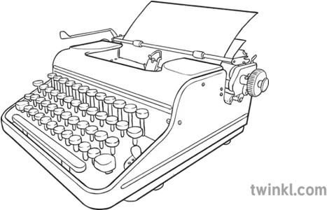 Typewriter Black And White Illustration Twinkl Line Art Png Typewriter Png